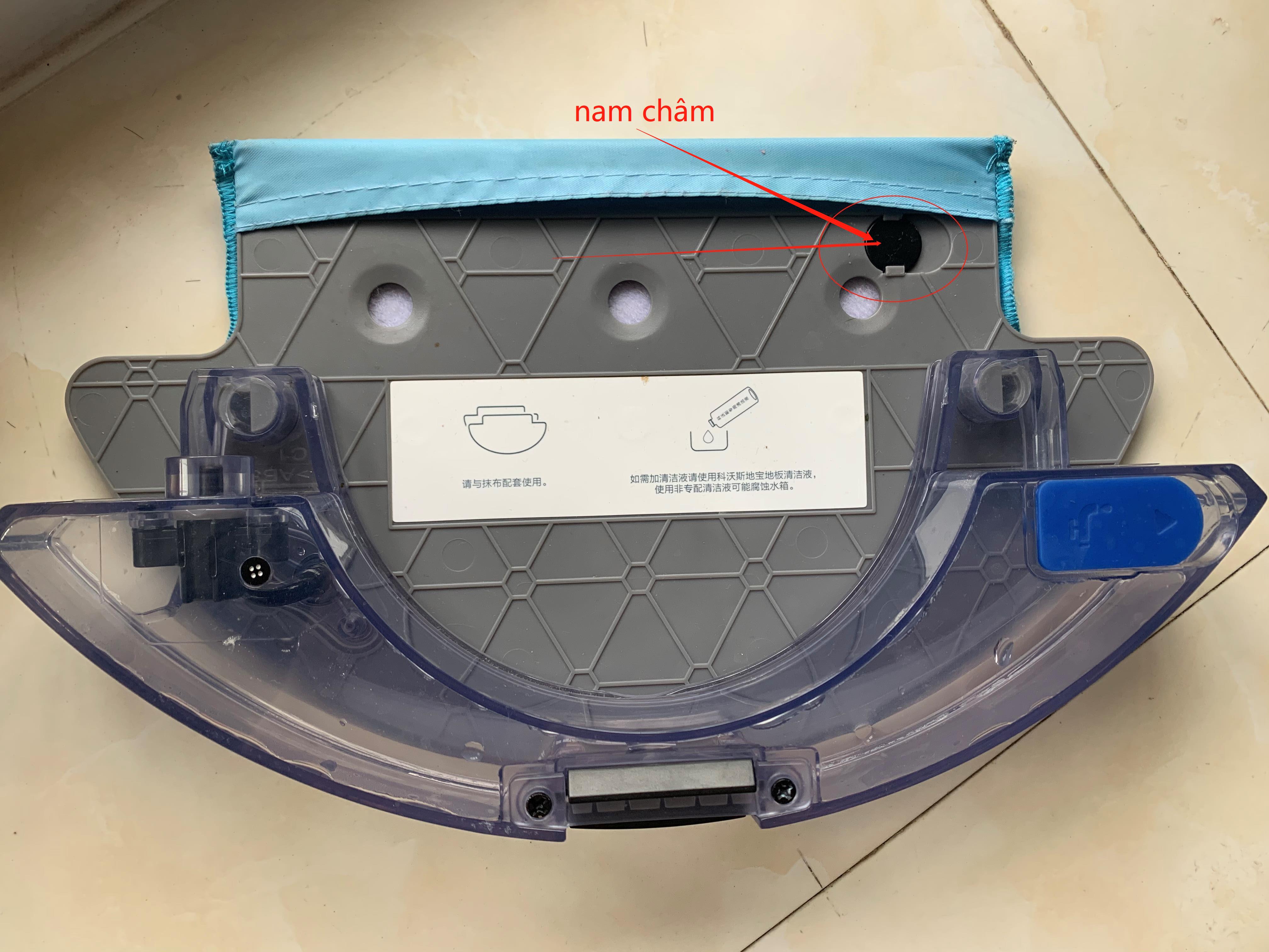 - Làm sau kích hoạt chế độ lau trên robot : robot sẽ tự động kích hoạt chế độ lau khi bạn lắp khay giẻ vào, ở khay giẻ có 1 miếng nam châm để giúp robot nhận biết và kích hoạt, việc của bản là đảm bảo nước trong bình nước và giẻ lau sạch trước khi cho robot làm việc.