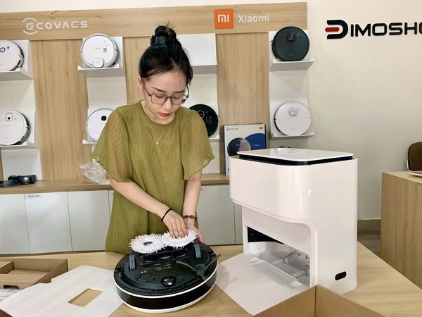 Với bộ cảm biến chính xác được đặt dưới thân máy. Robot có thể nhận diện chính xác độ bẩn của giẻ lau. Sau khi xác nhận tình trang robot sẽ tự động bật chế độ giặt giẻ.