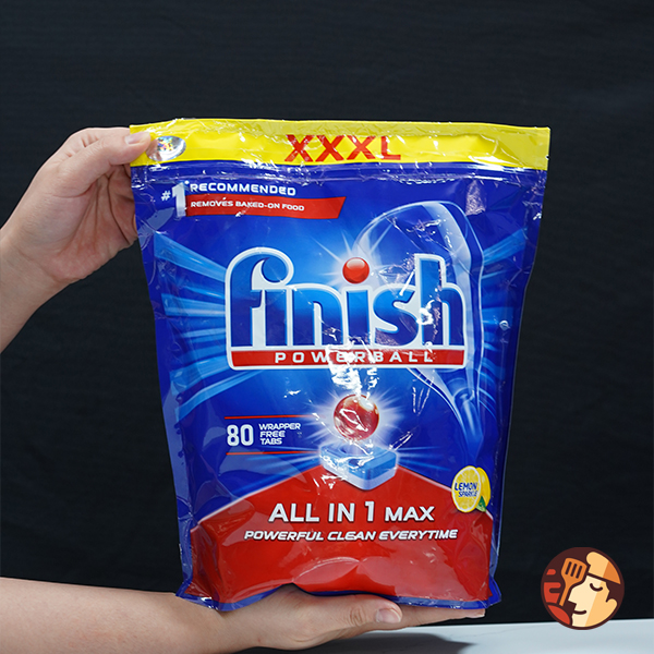 - Khác với viên rửa chén thông thường khi sử dụng bạn phải xé bỏ lớp túi bảo vệ viên rửa, viên rửa chén Finish All In 1 Max Dishwasher Tablets Lemon là dòng sản phẩm cao cấp bạn không phải xé bỏ lớp bóng vì nó có lớp màng tự tan, chỉ cần lấy ra một viên rồi đặt vào khay chứa của máy.
